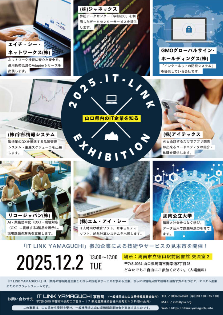 この度、2025年12月2日(火)「周南市立徳山駅前図書館 交流室2」にて、2025.IT-LINK EXHIBITIONを開催します。